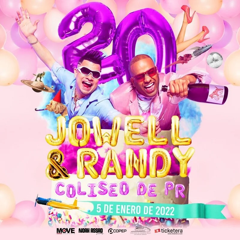 San Juan PR, (5 de julio de 2021). - El aclamado dúo de reggaetón Jowell & Randy, se presentarán en concierto, para celebrar sus 20 años de trayectoria musical en el icónico Coliseo de Puerto Rico, el próximo miércoles 5 de enero de 2022.